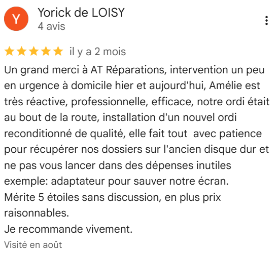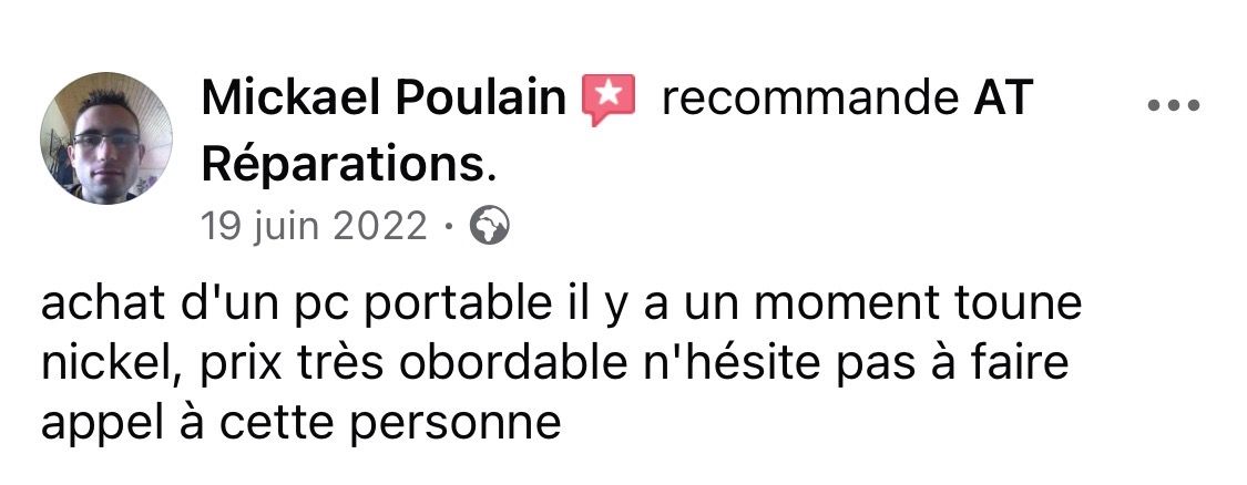 AT Réparations est une jeune micro entreprise spécialisée dans la réparation d'ordinateurs, tablettes, téléphones et consoles ainsi que dans la vente de pièces. N'hésitez pas à me contacter.